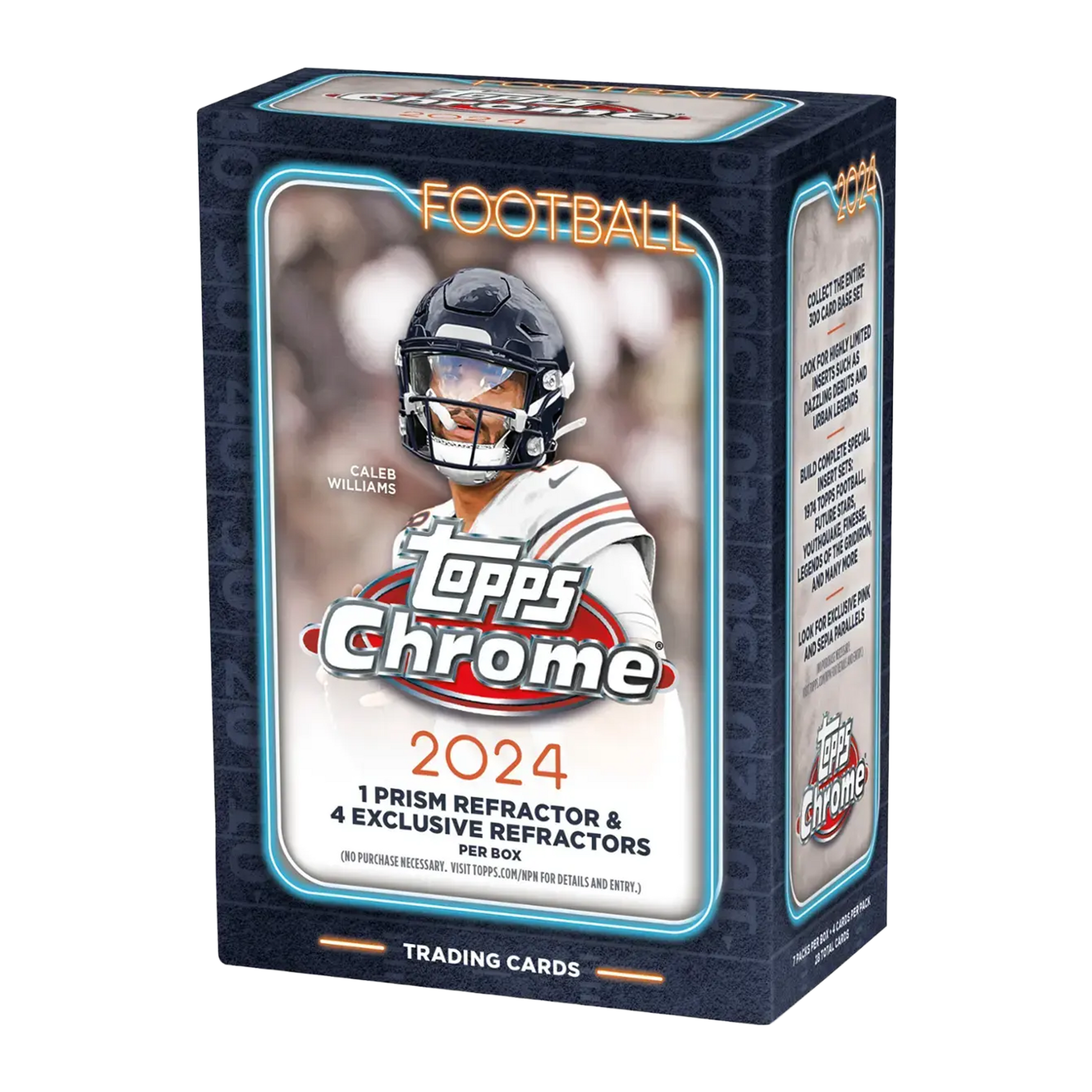 Hunt for top rookie cards, autographs, and exclusive parallels in the highly anticipated 2024 Topps Chrome Football release! Each blaster box offers a chance to pull rare inserts and numbered cards of the league's brightest stars.